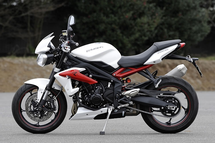 1990年から水冷3/4気筒車を主軸に据えるようになったトライアンフが、初めて手がけたミドルネイキッドは、『TT600』の基本設計を転用して開発した『スピードフォア』。2002年に発売されたこのモデルは、残念ながら好セールスを記録することはできなかったけれど、同様の手法で『デイトナ675』をベースに製作された『ストリートトリプル』では、状況が一変。並列3気筒ならではの豊富な低中速トルクと鼓動感に加えて、抜群の扱いやすさを備えていることが世界中で評価され、2008年のデビューイヤー以来、ストリートトリプルはトライアンフの稼ぎ頭となっているのだ。
