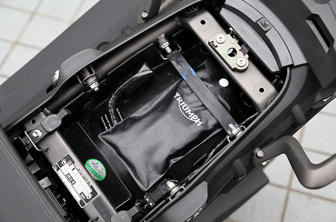タイガー800XRxと同様、センタースタンドが標準装備されていて、整備などがしやすい。ただ、このスタンドを上げるのに一苦労した。接地する2点をしっかり地面に着け、かなり力いっぱい上げる必要がある(もしかしたらコツがあるかもしれないので、見つけしだい今後のインプレで発表したい)。