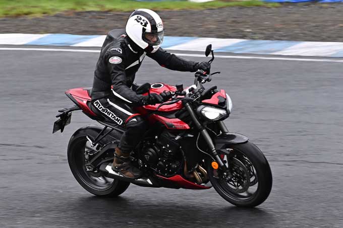 新型ストリートトリプルの体験試乗が20分間のコース走行内で行われた。