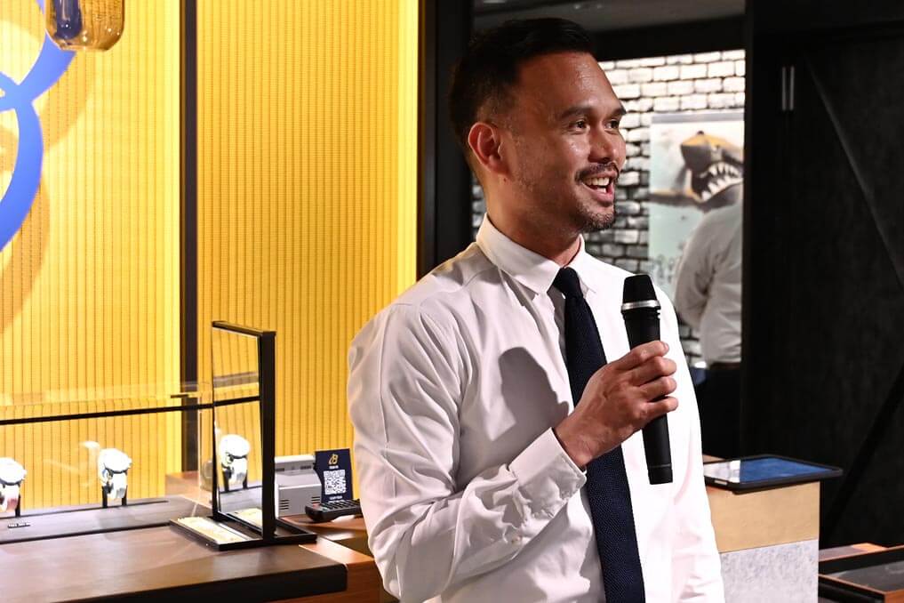 イベントはブライトリング ブティック 表参道のシャーウイン店長の挨拶からスタート。「今回のイベントをエンジョイしてください!」とは店長の弁。