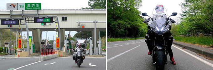 車両重量214kgを思わせない、ヒラヒラと舞う軽快さ。次のコーナー、またその次のコーナー……と、目線を送ればその通りのラインを走る、体勢を変えてもちゃんとポジションがしっくりくる、“人馬一体” 感がとても快感!今度 機会があればぜひドライコンディションで走りたい。